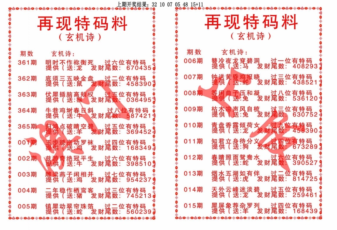再现特码料