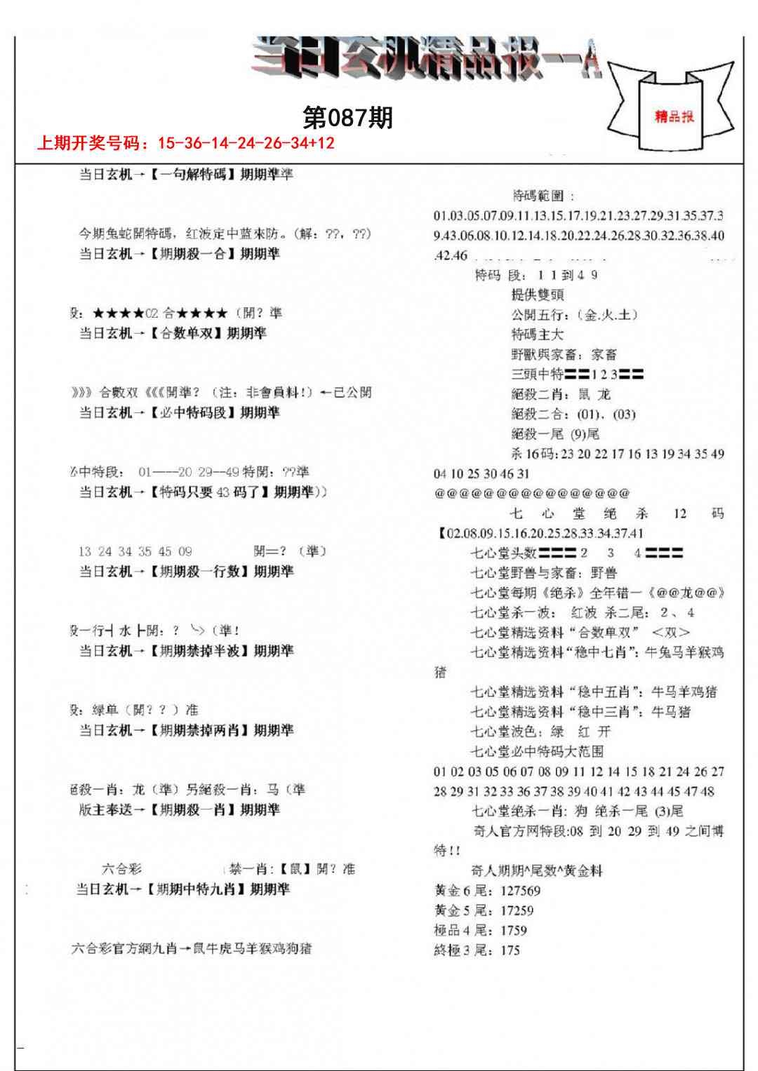 当日玄机精品报A